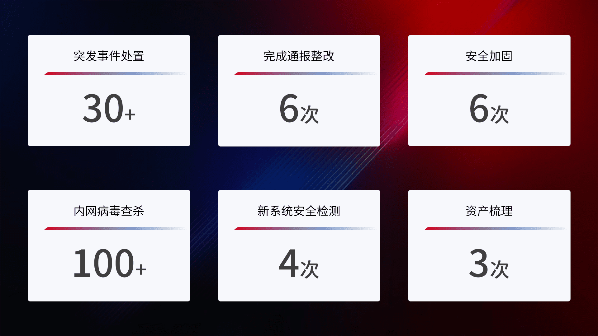 网络安全加固与风险管理:通过技术加固手段,,,,如加强区域隔离,,缩减攻击内网横向移动的范围;优化现有网络安全管理制度,,,,降低网络威胁暴露面,,,,减少被黑客攻击的可能性。。。